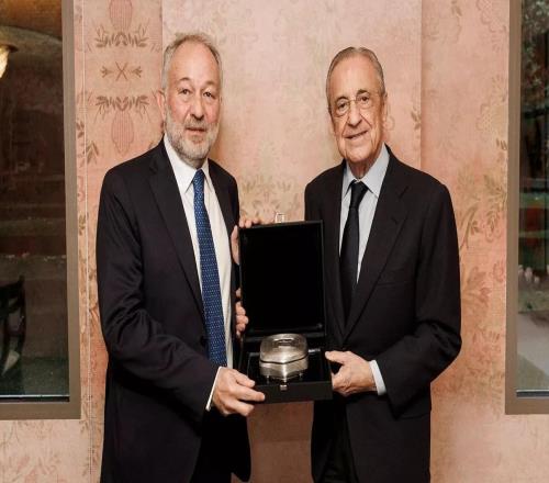 传统环节,弗洛伦蒂诺与尤文主席在欧冠赛前互赠礼物