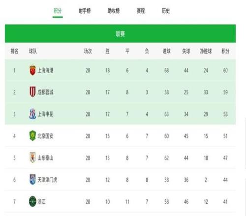 10月26日,中超第28轮继续上演精彩的争冠大战。在上海海港队率先以1比3输给球风强悍的山东泰山队后,原本排名第二的成都蓉城、上海申花竟然也没有全取三分,直接导致海港队即便输球依旧是积分榜领头羊。