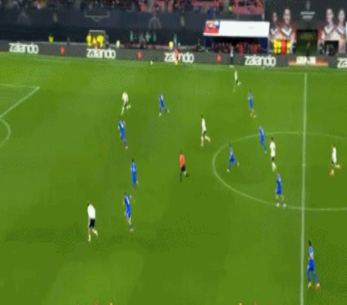 第38分钟,维尔茨一次十分潇洒的长传直接打穿了斯洛伐克的整条防线,让萨内获得单刀机会轻松破门。